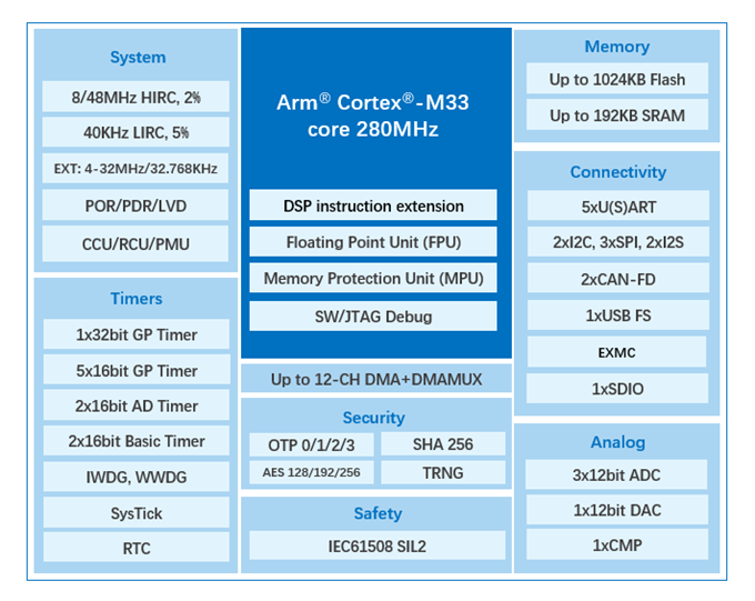 該系列芯片配備了高達1024KB Flash和192KB SRAM,用戶可根據自己應用場景,通過分散加載方式,靈活選擇Code-Flash、Data-Flash、SRAM容量。這一特性允許用戶根據特定應用場景“量體裁衣”,在復雜的工業(yè)控制及消費電子產品中實現資源的最優(yōu)化配置,顯著提升設計彈性與成本效益。